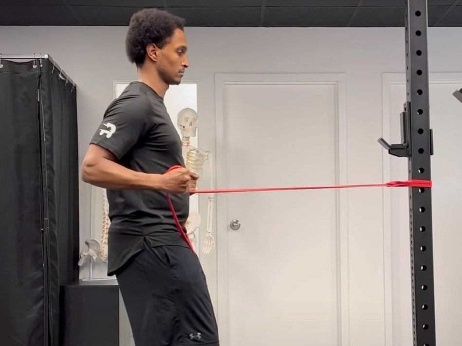 Hold a resistance band with both hands, keeping it taut. Stand with your feet shoulder-width apart. Slightly bend your knees and hinge at your hips. Your torso should be almost parallel to the ground. Extend your arms in front of you, then pull the band apart by moving your arms out to your sides. Ensure your elbows are slightly bent. Squeeze your shoulder blades together as you complete the motion. Slowly return to the starting position. This movement is an excellent addition to your resistance band back exercises. It targets the upper back and rear delts effectively. Incorporate reverse flyes into your routine for a comprehensive back workout with resistance bands.