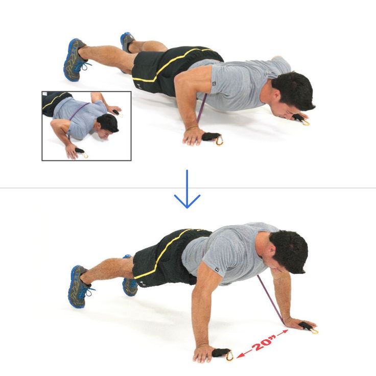 - Push-Up: Push back up to the starting position, extending your arms fully but keeping tension in the bands.